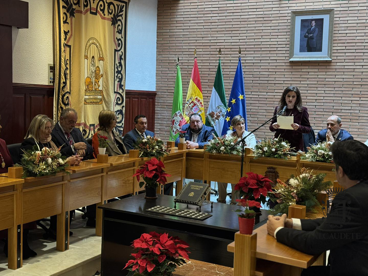 Alcaudete celebra el Día de la Constitución reconociendo a los Servicios Sociales y a la Dependencia. El pasado 6 de diciembre, Alcaudete conmemoró el Día de la Constitución Española con un completo programa institucional que comenzó a las 11:00 horas con el pasacalles de la Banda Municipal de Música, partiendo del Ayuntamiento y recorriendo las principales calles de la localidad hasta la Plaza 28 de Febrero. A las 12:00 horas se celebró en el Salón de Plenos el Pleno Extraordinario del Día de la Constitución, presidido por la alcaldesa, Dña. Yolanda Caballero Aceituno, quien dio lectura a la Declaración Institucional, destacando los valores democráticos, la igualdad de derechos y la cohesión social recogidos en nuestra Carta Magna.